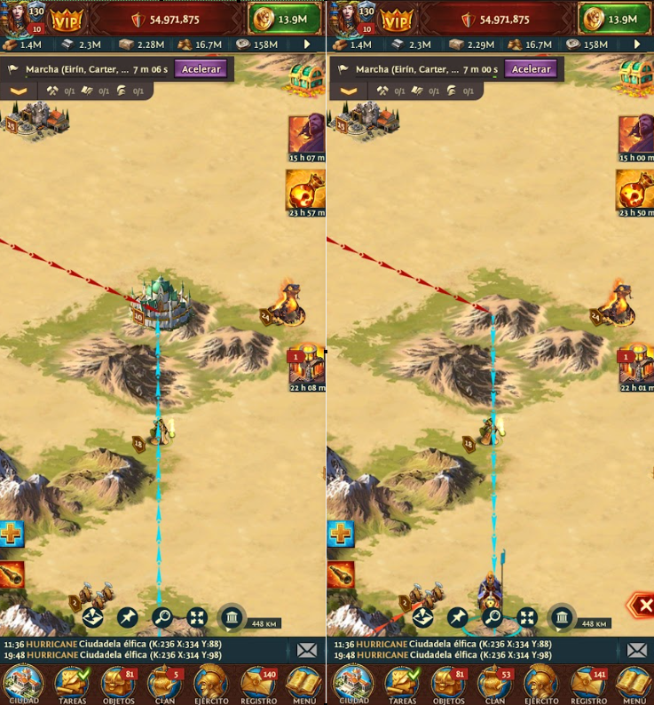Player A sends troops to the chosen Citadel without using speed-ups yet.